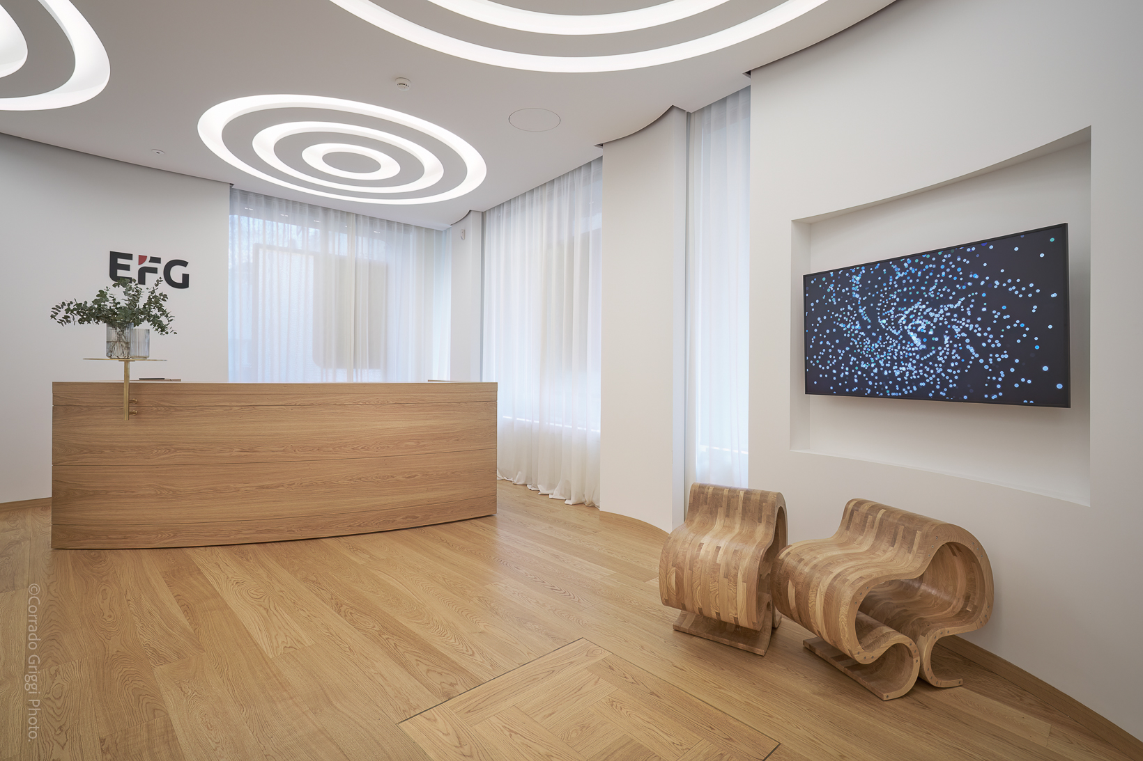 Every interior design project applies the EFG space experience with a local touch, using local materials and know-how, balancing the global values of the bank with local, in a sign of respect, care and awareness. The precision treatment and the implementation of core values into the built space deliver a sense of security and place people and clients at ease in an environment that is new, informal but institutional at same time. Every detail is studied and precisely executed, providing what we think is the most pragmatic and legible expression of efficiency: the built environment.