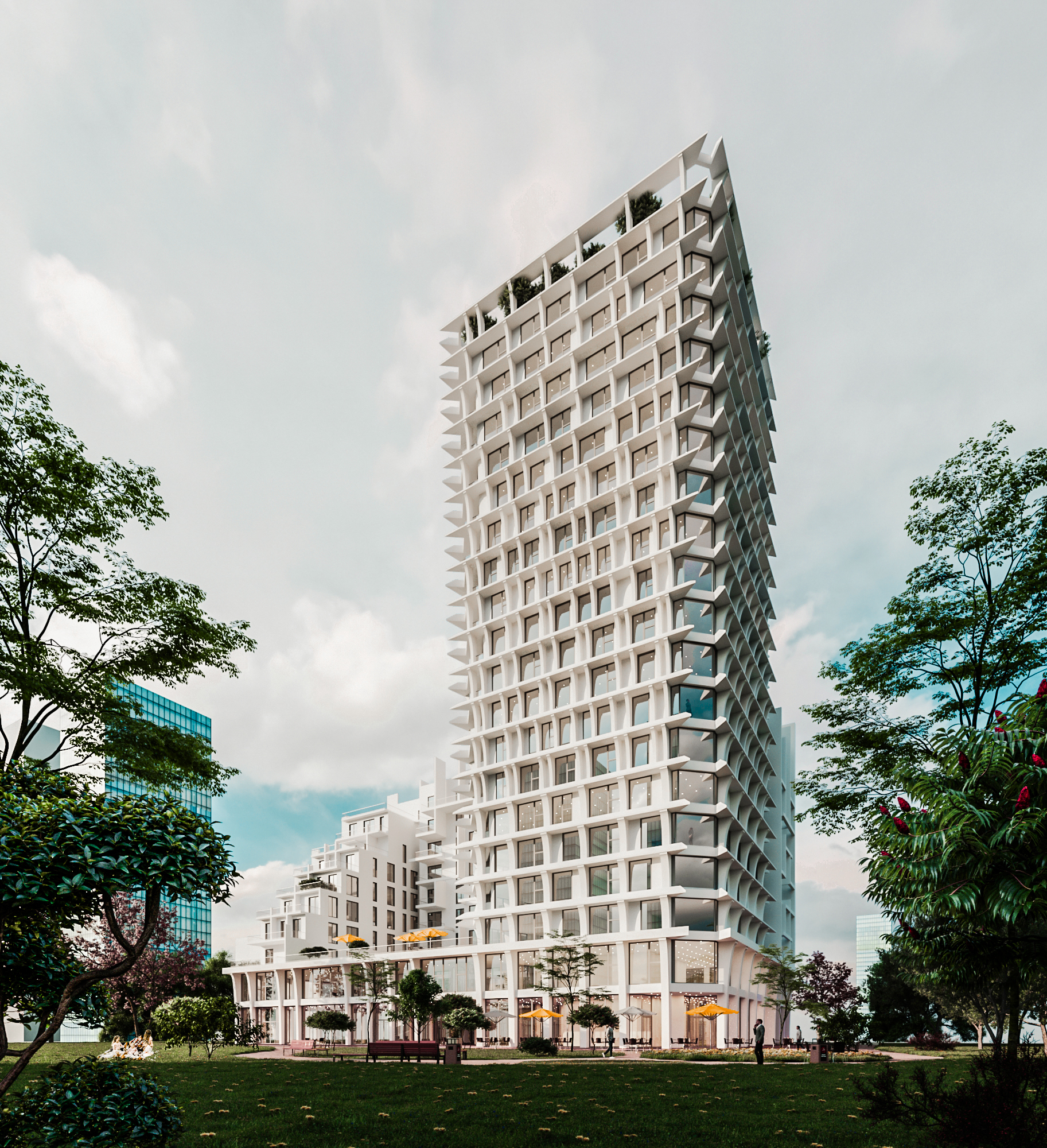 The result is a neighbourhood that feels like a park—where architecture and nature are not merely adjacent, but entwined. The organic cohesion of the forms resonates with an innate psychological preference for environments that echo natural patterns, creating a connection between body, landscape, and shelter. This approach draws on architectural traditions while engaging with the deeper layers of perception and lived experience. The architecture is not only functional—it aspires to elevate daily life.